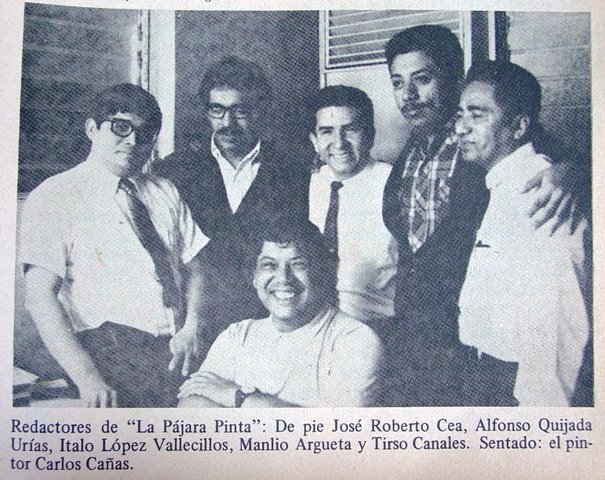 Vean esta fotografía, probablemente de 1969, donde Italo López Vallecillos aparece con los compañeros con quienes escribía en la ya desaparecida revista «La Pájara Pinta».