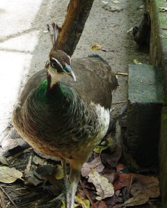 La hembra de pavo real, bella también, tiene unos colores menos vistosos.