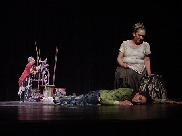Grupo de teatro Moby Dick. De izq. a derecha: Dinora Cañénguez, Mercy Flores (sentada) y Rosario Ríos.