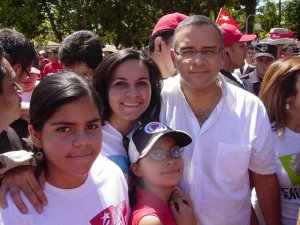 Mauricio Funes, junto a mi esposa Érika, bajo el sol abrasante de Sensuntepeque, tres días antes de las elecciones