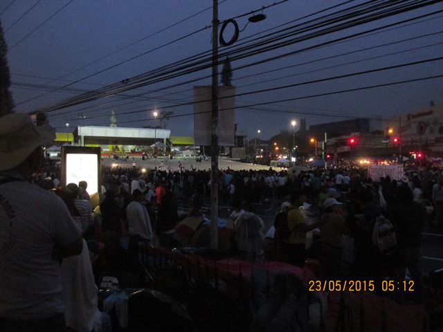 Junto a Jenny Menjívar y Gabriel Cerén armamos el viaje al monumento al Divino Salvador del Mundo, nos propusimos asistir a la vigilia del viernes 22 de mayo y poder así lograr un buen puesto, ya que sabíamos que el lugar y los contornos se llenarían, y no queríamos estar apretujados. Trate de dormir un rato el viernes por la tarde —antes de que Jenny llegase por mí—, pero no pude, el calor ambiental previo a la tormenta de las 4:30 pm, me lo impidió.