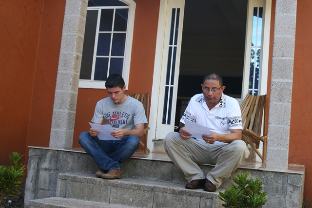 Saúl Alfaro y Óscar Perdomo León, leyendo el guión antes de rodar.