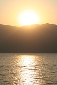 Y en esta última foto de abajo, podemos observar un cayuco, y vemos nuevamente a dos grandes, al lago de Ilopango y, al fondo a la izquierda, al volcán Chinchontepec. Esa de abajo la tomé desde una vista nor-poniente.