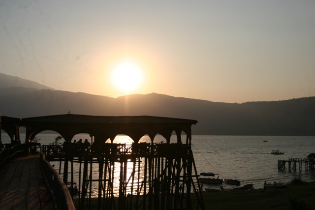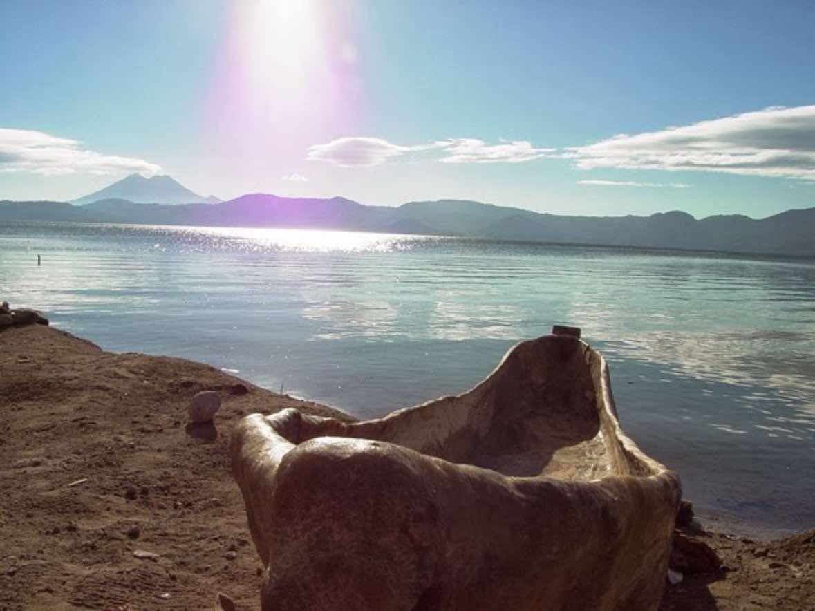 Y en esta última foto de abajo, podemos observar un cayuco, y vemos nuevamente a dos grandes, al lago de Ilopango y, al fondo a la izquierda, al volcán Chinchontepec. Esa de abajo la tomé desde una vista nor-poniente.