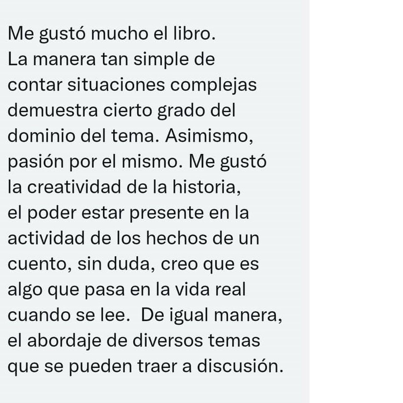 Es un libro del cual disfruté mucho leyéndolo.
