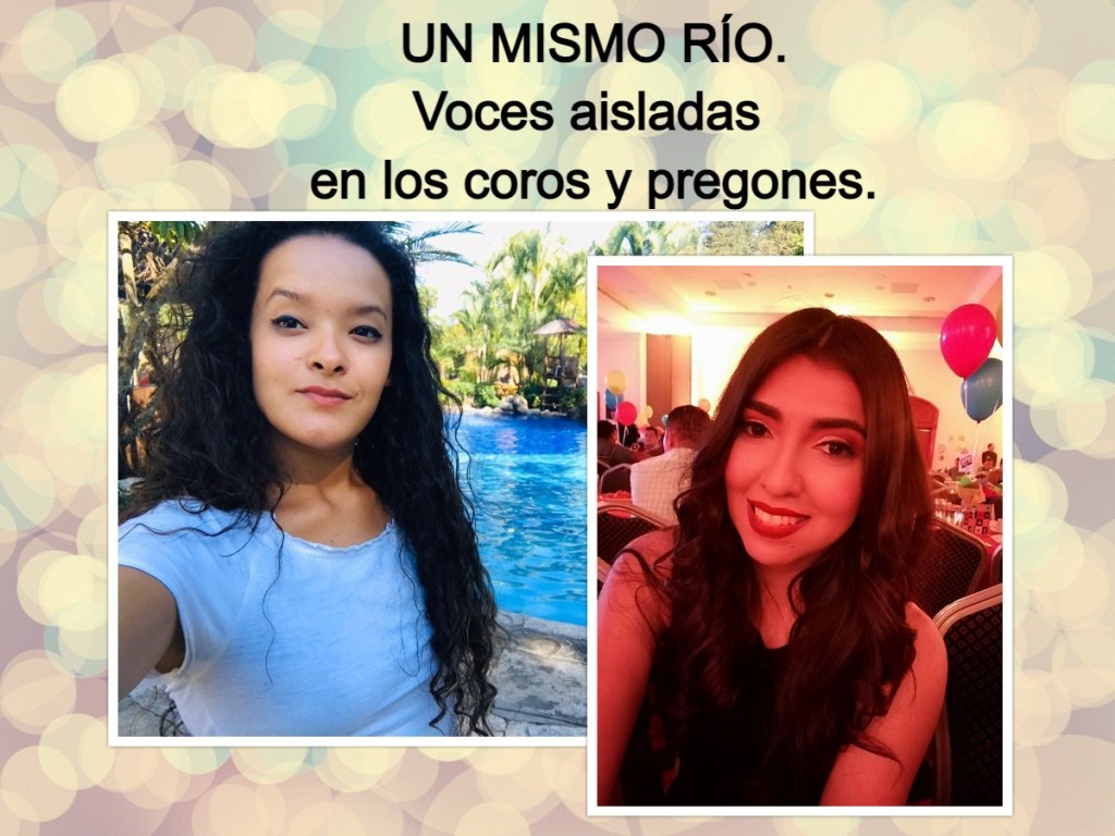 Esta semana les dejo las voces aisladas de Mily Echeverría y Karla González, de una canción (Un mismo río) que grabamos hace como un año. Pero lo que escucharán aquí es solo la parte de los coros y los pregones.