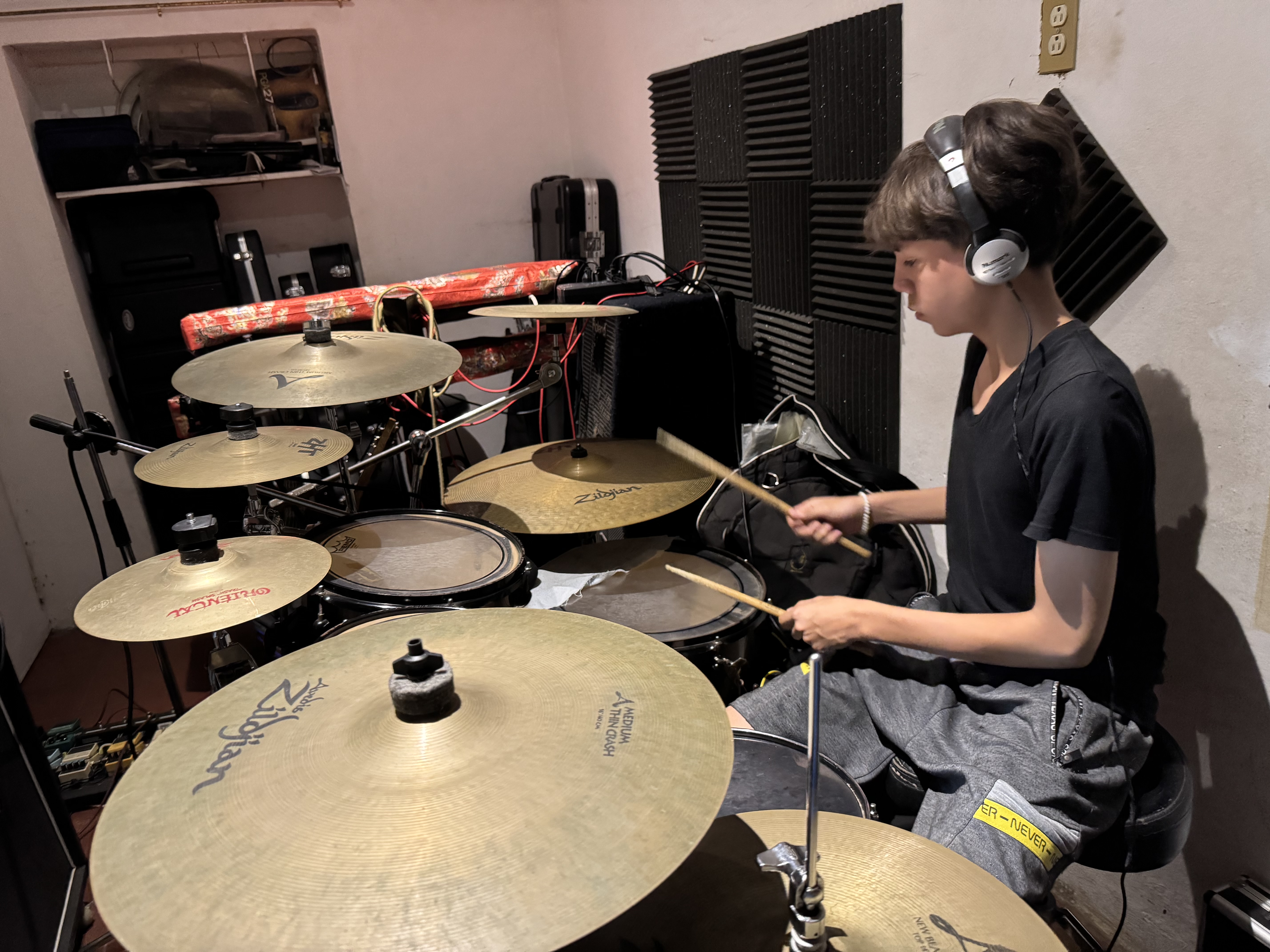 NOTA. En la fotografía de arriba aparece Eric De León, grabando la batería de Sun king.